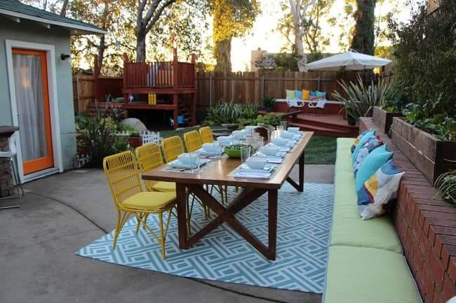 While you don’t need to have both an outdoor kitchen and dining area, they usually go hand in hand. Outdoor kitchen designs range in price and extravagance. If you want to keep it simple and within a lower budget, you can easily add extra counter space. A popular backyard DIY project is to create a built in piece around your grill. You can achieve the look of a custom outdoor kitchen on your back deck or patio without the high price. The frames are easily made with lumber that you can get from any home improvement store. By building your own frame, you can add as much counter space and cabinets as you need. If you have a larger budget, you can install a mini fridge for the ultimate kitchen feel.