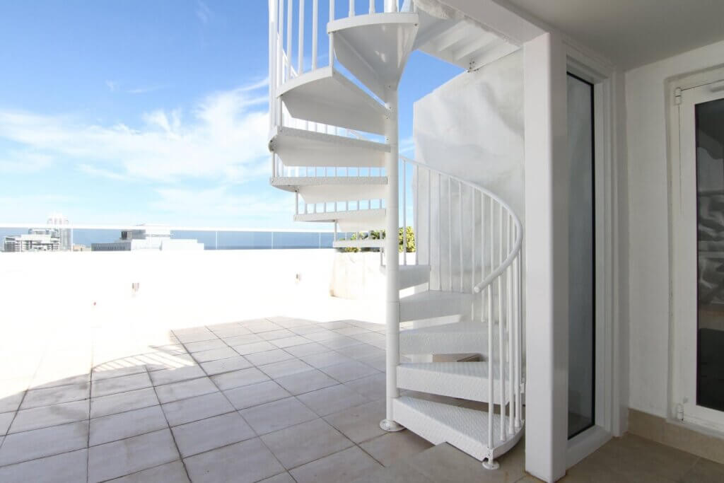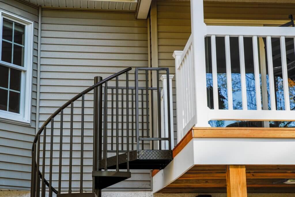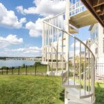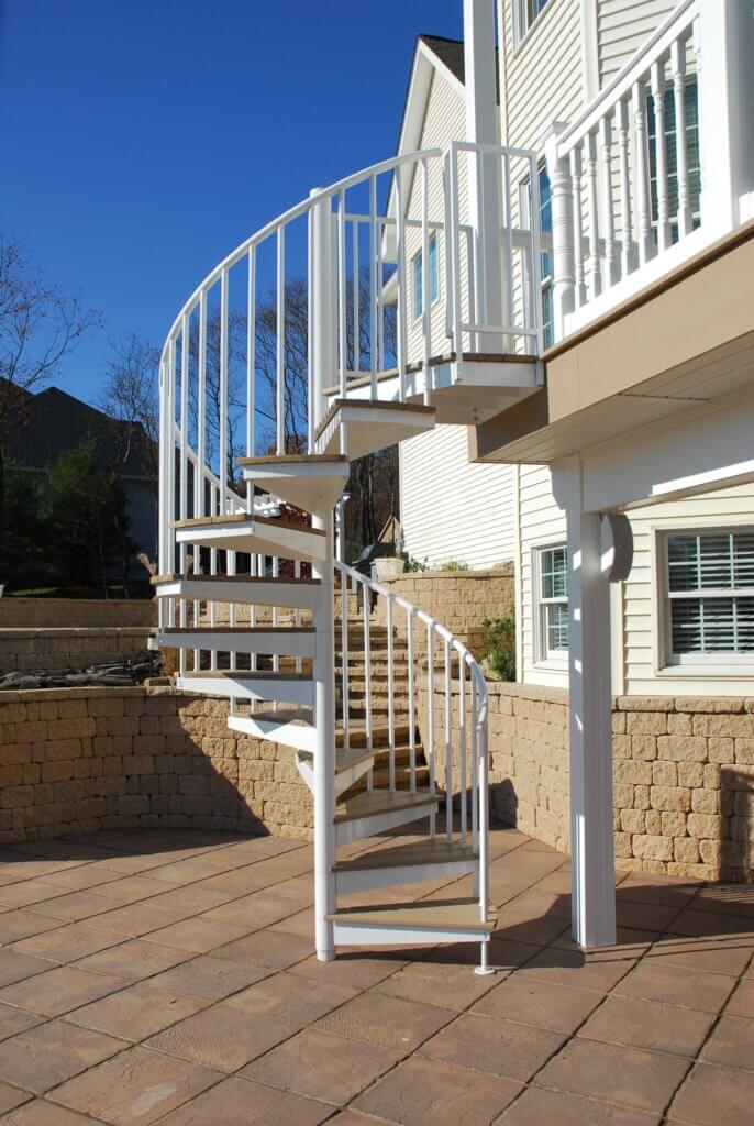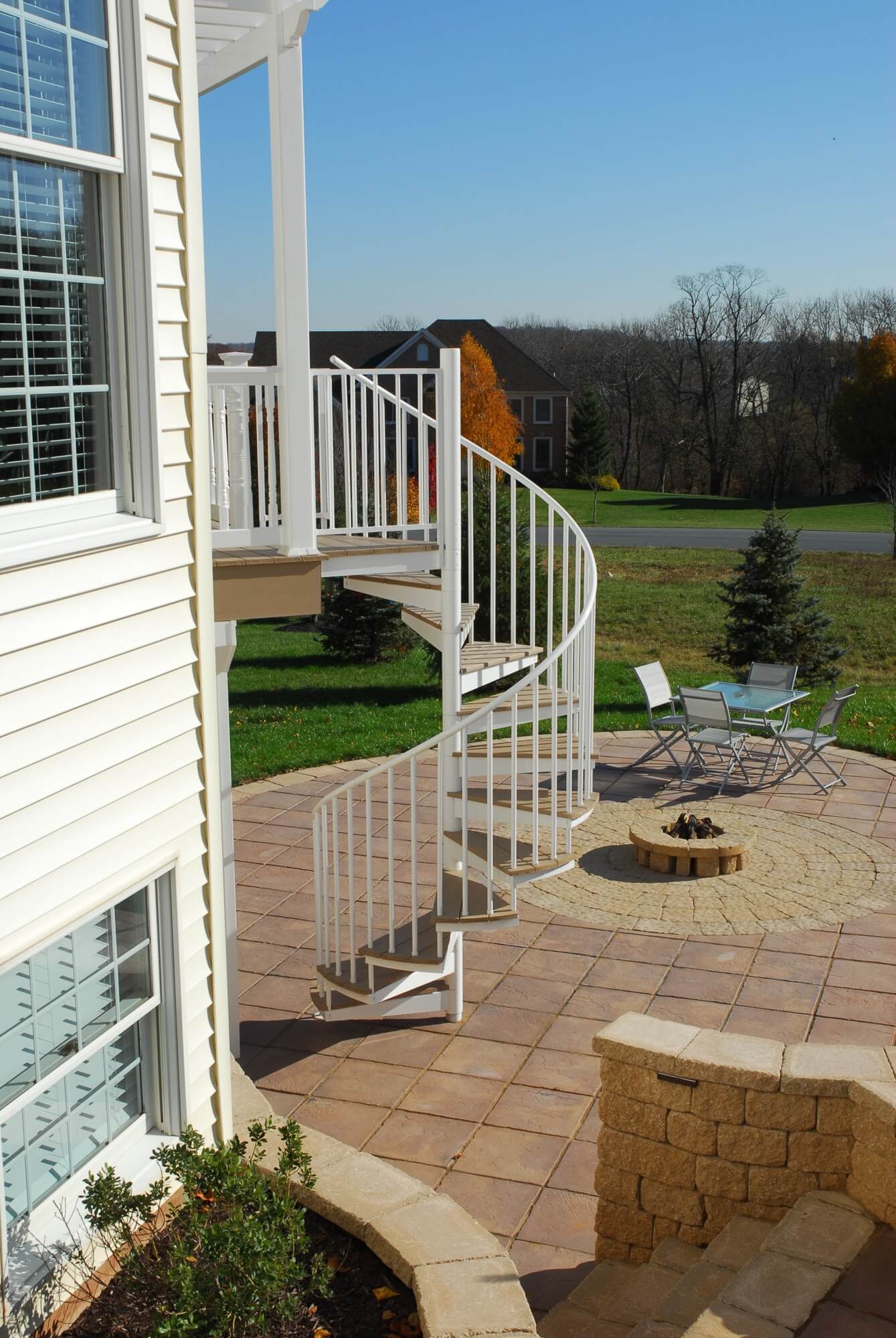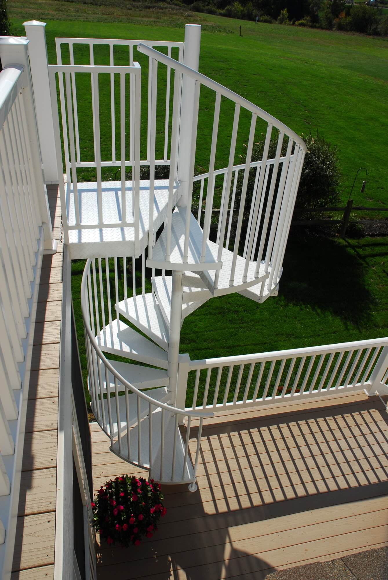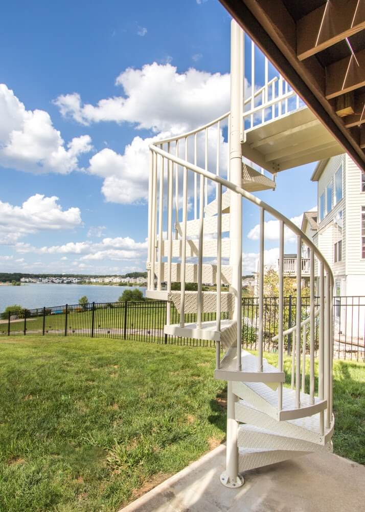 In this group of pictures of stairs you’ll see our highly durable, completely maintenance free Aluminum Deck stair in action. If you need an outdoor stair and you live in an area where corrosion is a strong concern, this stair is the best way to go. As seen in our Aluminum Deck stair images, powder-coating comes standard with each stair and custom colors are available to make the stair an exact match for any space’s scheme.