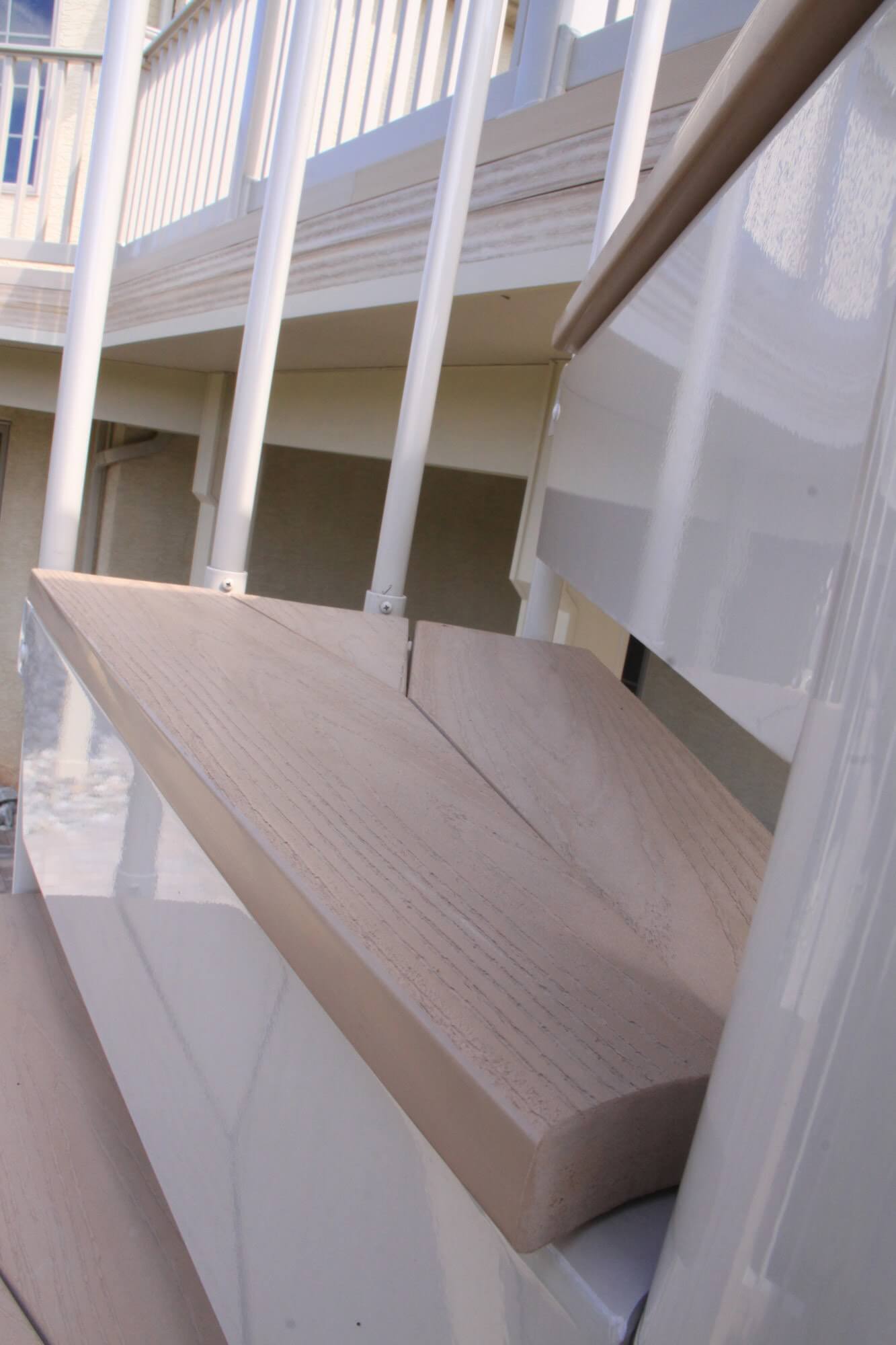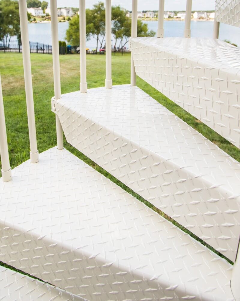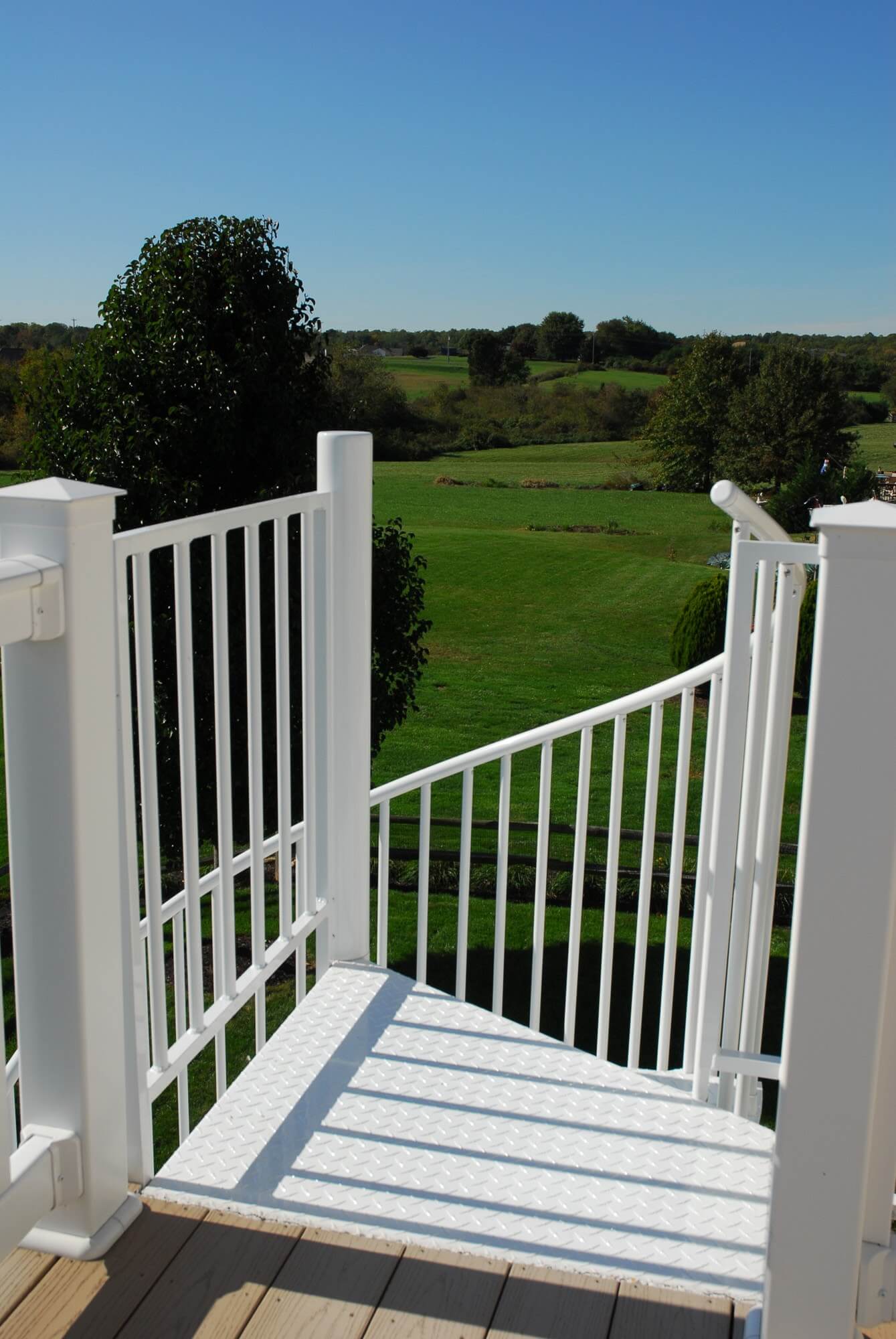 Our deck stair images display a wide assortment of the possibilities that await your outdoor stair needs. Patio, pool, deck, or balcony, our Aluminum Deck stair line is the number one choice for a lifelong stair to suit your backyard recreation needs. As you look further into these deck stair photos, you’ll also notice the broad spectrum of colors available to you through our AL color matching system. This means you can custom order any color you can think of.