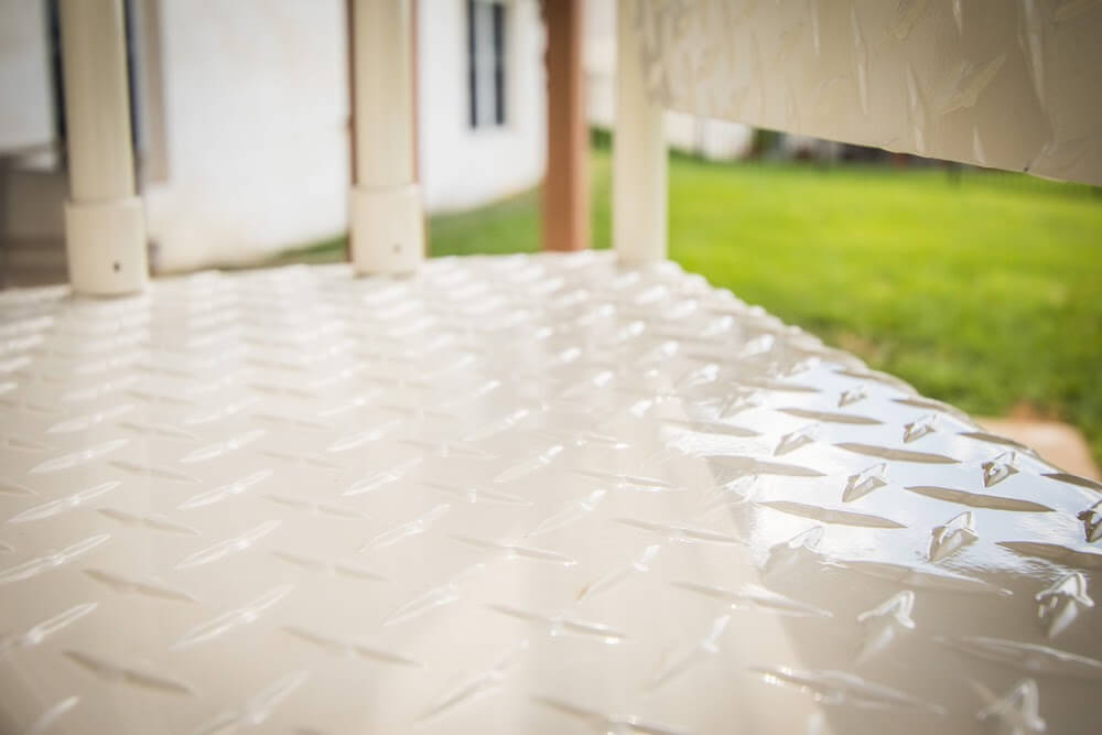 Because your Aluminum Deck stair will live outdoors, you’ll likely want to consider such additional safety features as diamond plate treads for slip resistance, or fan or grate cut treads to allow heavy precipitation to pass through and keep your steps clear. Please don’t hesitate to speak with our helpful designers to learn what other features may work best for your particular install project.