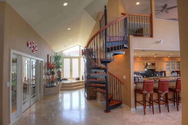 If you have a traditional staircase and want to upgrade your home’s style further than a simple paint job, consider installing a spiral stair. The unique design can enhance your home’s design and create more space.