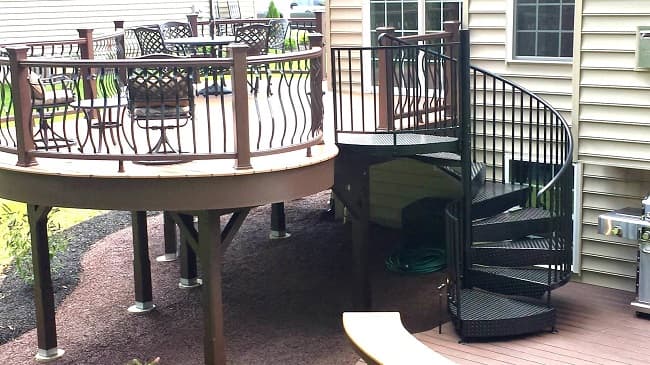 Homes are getting smaller and smaller and their outdoor spaces are doing the same. A small backyard doesn’t mean that you can’t have a beautiful deck. Clever design and the right additions to your deck can help you to maximize your small deck design. If you want to learn more about a spiral stair design for your small deck, a call to one of our consultative designers can get you pricing in five minutes or less.
